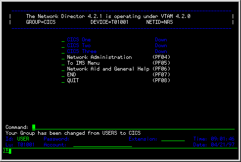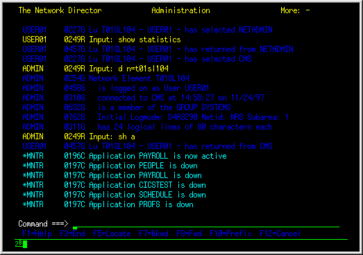 As terminal based systems expand, the requirement for adequate control has become an important factor. Network Director is a software subsystem that provides multiple facilities to assist in the administration of the network. Network Administration is the process of managing, monitoring, and planning the growth of the terminal network.